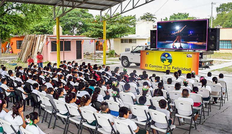 Ma questo non era sufficiente ed ecco perché nel 2014, lo schermo televisivo ha trovato il modo di farsi strada su un camion che da allora ha trascorso quattro anni viaggiando da una parte all’altra di Tamaulipas, raggiungendo in media oltre 18.000 bambini all’anno. Questo ha fatto sì che un canale televisivo mandasse in onda tre ore di programma su La Via della Felicità, con interviste di studenti che hanno raccontato come La Via della Felicità ha trasformato la loro vita. Poi annunci di pubblica utilità di La Via della Felicità hanno cominciato ad andare in onda ogni ora sulla radio Organización Radiofónica Tamaulipeca, raggiungendo più di 300.000 persone in tutto lo stato. Per non trascurare la loro città natale, cinque stazioni radio di Ciudad Mante hanno anch’esse cominciato a trasmettere gli annunci di pubblica utilità, che sono andati in onda anche su una stazione radio nella capitale dello stato: Ciudad Victoria.